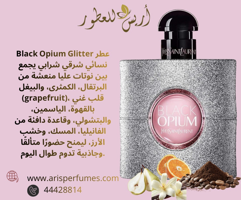عطر Black Opium Glitter هو إصدار أنثوي ساحر ولمّاع بلمسة عصرية جذابة، يجمع بين الحلاوة والإغراء في تركيبة مميزة. يفتتح بنفحات منعشة من الكمثرى واليوسفي، يليه قلب غني من زهر البرتقال والياسمين مع لمسة قهوة خفيفة تضيف طابعًا مميزًا، بينما تستقر القاعدة على الفانيلا والكريمة مع المسك لتعطي إحساسًا دافئًا حلوًا ولمسة “glitter” ناعمة تدوم طويلًا.